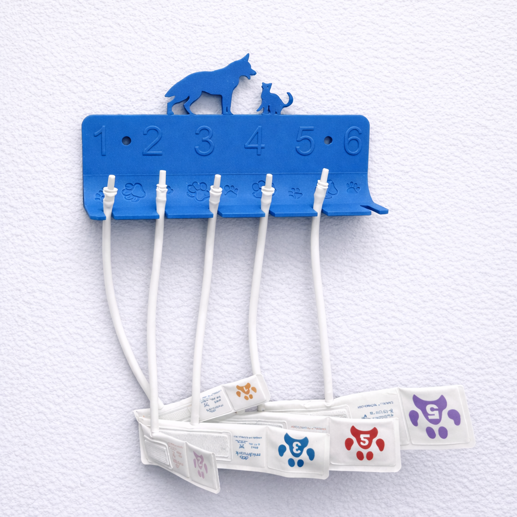 PulsHub 6 to funkcjonalny wieszak ścienny zaprojektowany z potrzeby lepszej organizacji w gabinetach weterynaryjnych. Ułatwia utrzymanie porządku, oszczędza miejsce i pozwala mieć niezbędne akcesoria zawsze pod ręką.